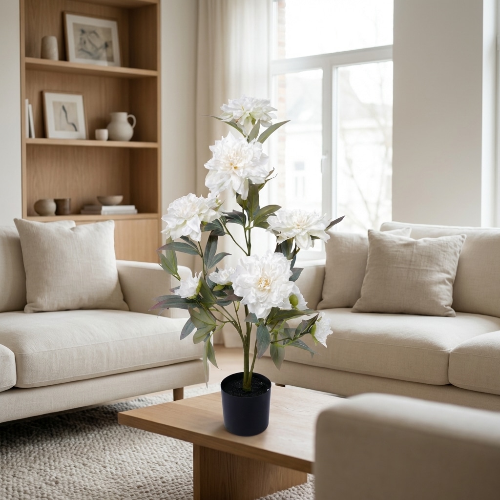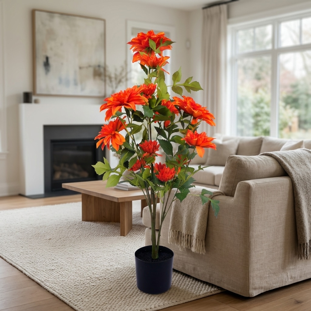 Elevate your interior décor with our 2.8ft Artificial Dahlia Plant. Standing at 85cm, this exquisite potted arrangement showcases the majestic dahlia flower in full bloom. Its lush foliage and striking blossoms create a captivating focal point, perfect for living rooms, boutique hotels, or commercial spaces seeking refined botanical beauty without maintenance concerns.