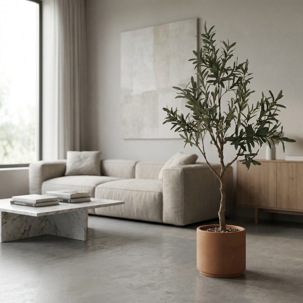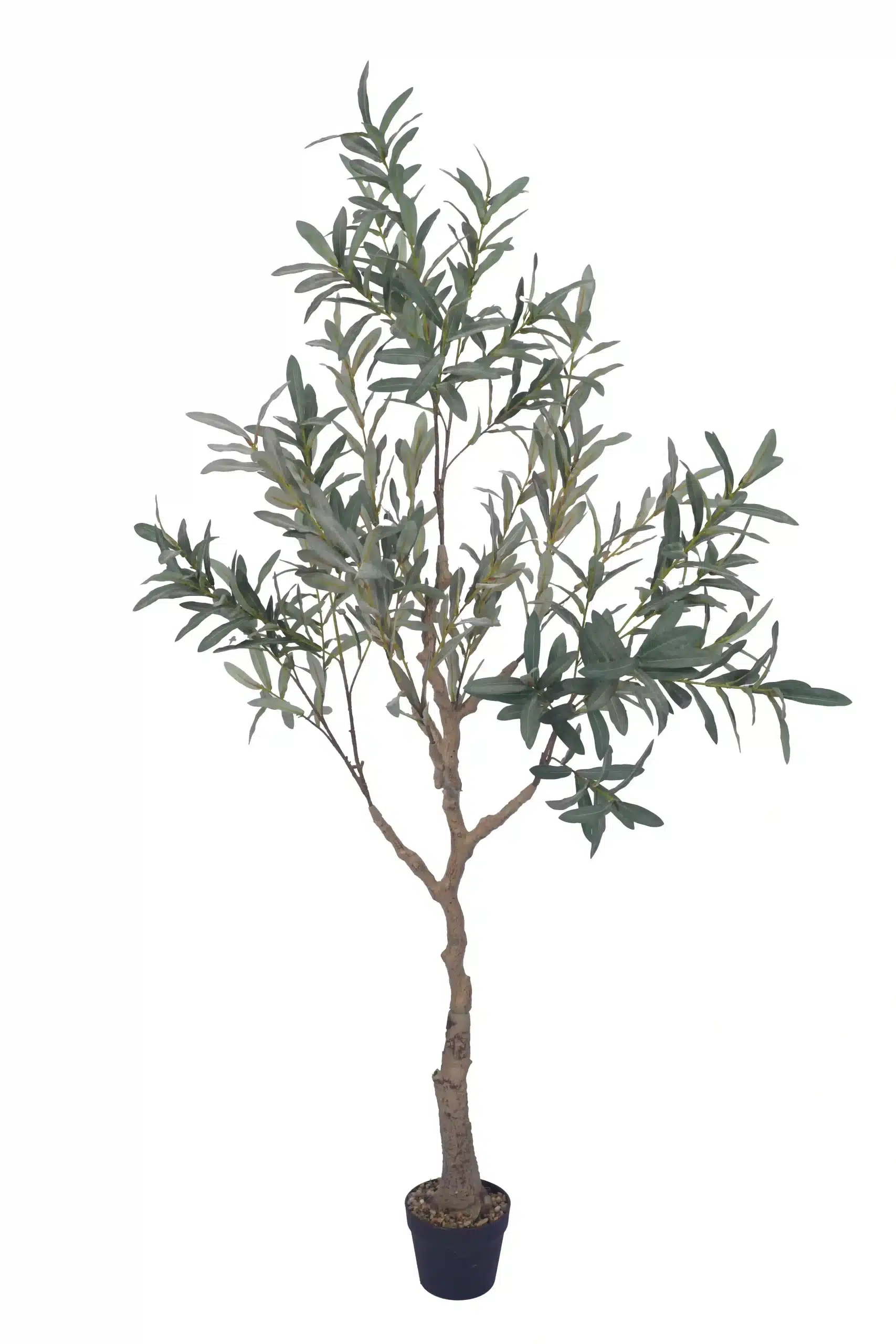 Our 5.5 ft. artificial olive tree brings the serene beauty of the Mediterranean to any interior. Featuring meticulously crafted, silvery-green leaves and realistic faux olives, this tree perfectly captures the essence of a mature olive grove. This premium faux olive tree offers a timeless aesthetic without the need for sunlight, water, or pruning, making it an ideal, maintenance-free decorative solution. As a leading supplier of artificial Mediterranean plants, we ensure superior quality and durability. Our decorative olive trees are perfect for wholesale, offering indoor artificial trees that enhance homes, offices, restaurants, and event venues with their elegant and calming presence.