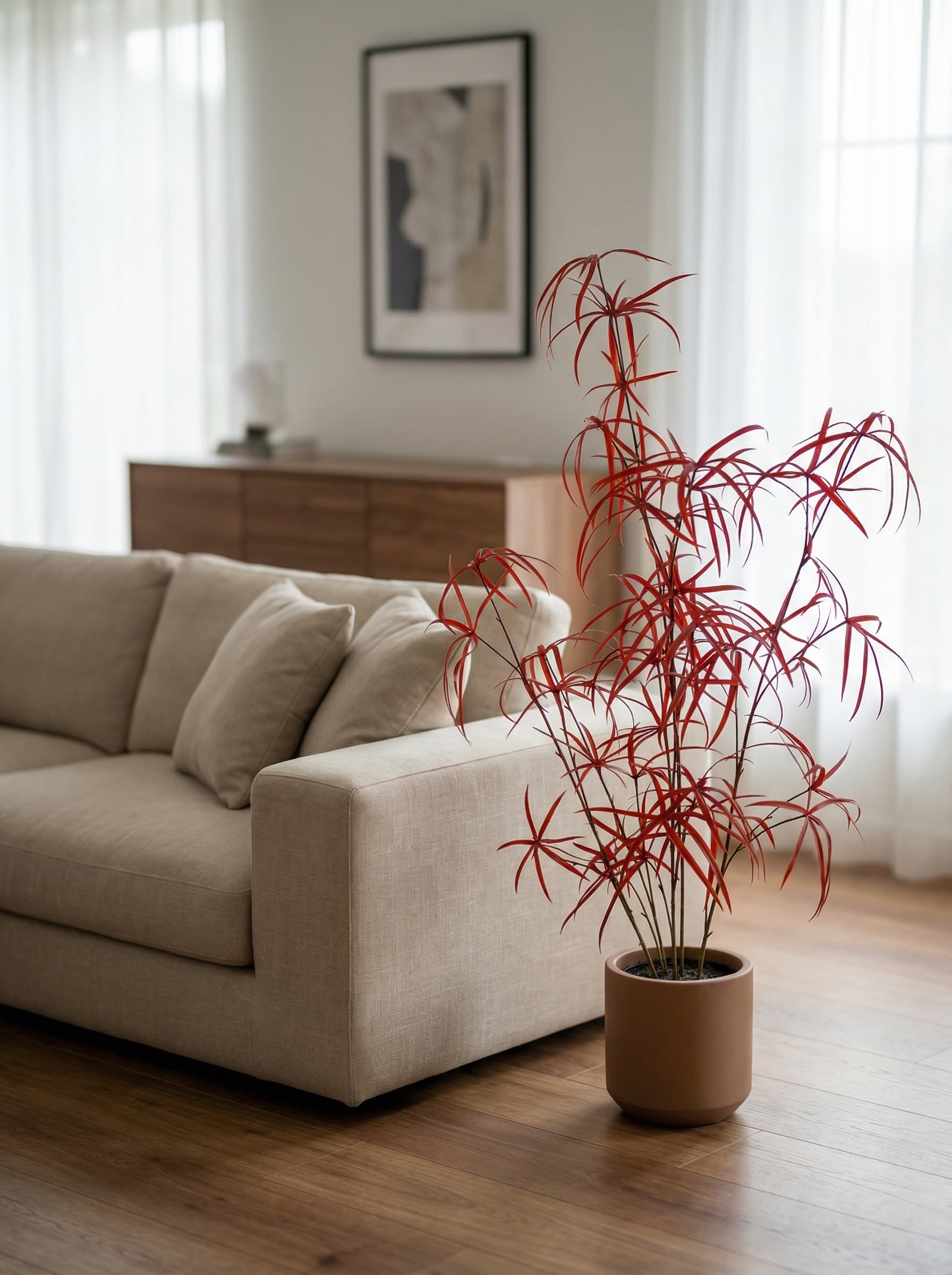 This amazing 3.5ft windmill grass brings the graceful movement of ornamental grasses into any interior space. Standing at 105cm (approximately 3.5 feet), this artificial grass features 20 large blades and 13 smaller accent leaves, creating the authentic layered appearance of natural windmill grass without any watering or maintenance requirements.
