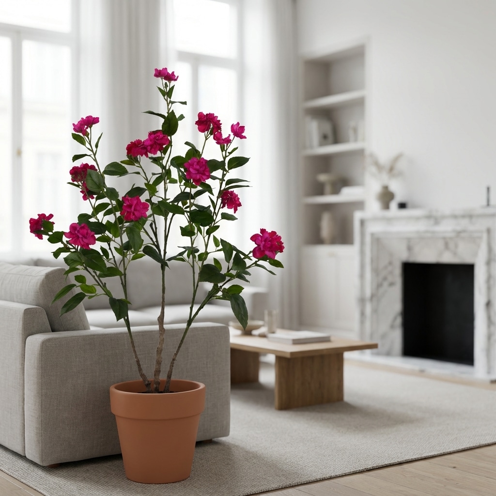 Perfect for apartments, bedrooms, and cafe tables. Crafted from high-quality PE plastic with 102 leaves, zero maintenance required.